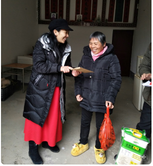 2018年12月11日上午乐天使fun继续教育公司党支部书记曾小玲教授冒着严寒驱车前往双峰县长丰村,进村入户,探访帮扶对象,开展精准脱贫攻坚一进二访活动。曾书记刚到长丰村顾不上休息,便与长丰村村干部一起来到了对口帮扶王戈英老人的家,为其送上慰问金以及大米等生活慰问品,曾小玲书记热情地拉着王戈英老人的手问寒问暖,仔细询问老人近期的生活情况、身体状况以及儿子李道在长沙打工的情况,了解老人在生活上存在的困难和需求,并鼓励老人照顾好身体,争取通过大家的帮扶和家人的共同努力,尽快让生活好起来。
