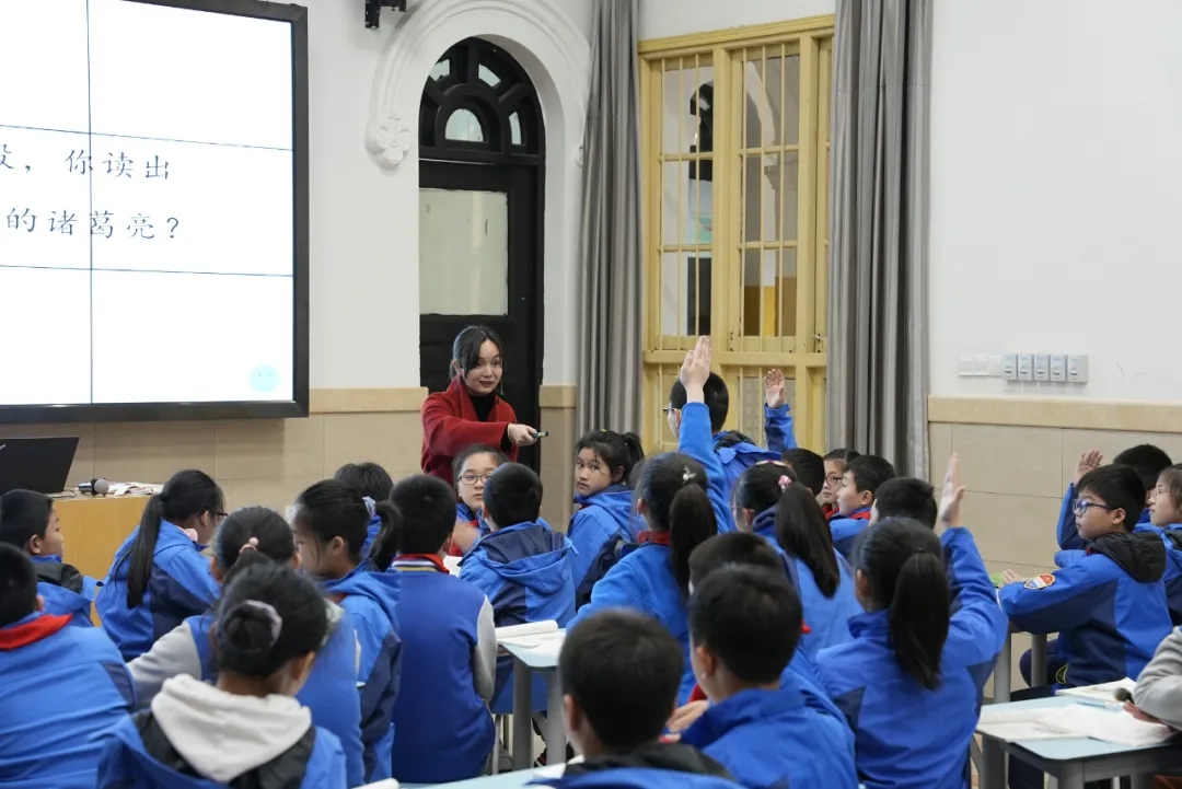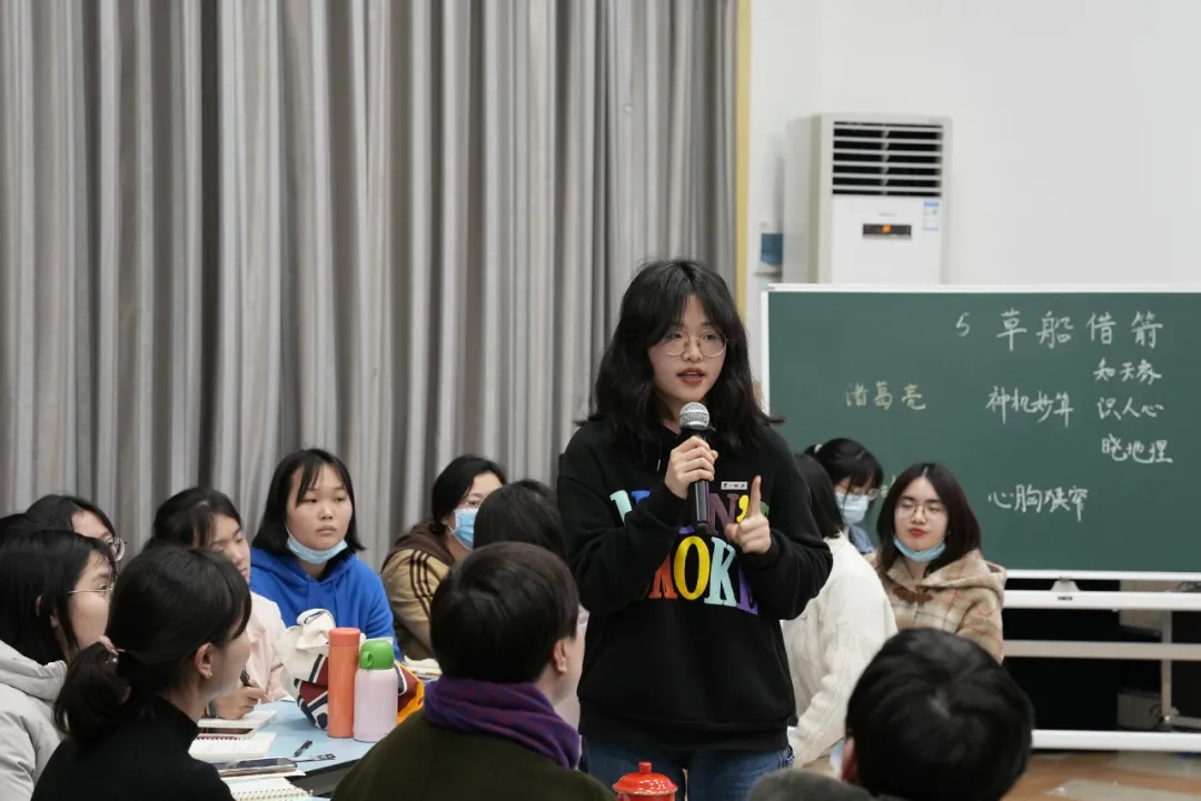 第二堂课是一附小的张泽佳老师执教的《草船借箭》。张老师从整体入手,以一个问题贯穿课堂始终,通过抓语言来分析人物特点,并在分析人物形象的过程中让员工初步学习阅读古典名著的方法。教学设计上具有很强的整体性和针对性,还加入了很多自己的小巧思,例如:将链接资料设计为奖励给员工的“小锦囊”,在补充知识、加深员工对文本理解程度的同时,调动了员工的学习积极性与阅读原著的兴趣。虽然古典名著的阅读对于五年级员工而言只是初探,但是从容、睿智的张老师将自己深厚的文学底蕴转化为幽默、风趣的语言,对员工循循善诱,在与员工的对话中,使原本略显生涩的课文“鲜活”了起来。