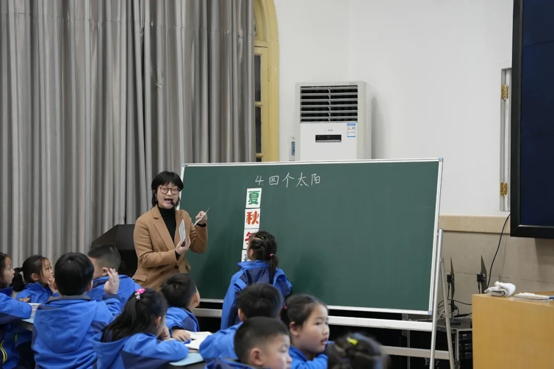 第一堂课是一师斑马湖小学的刘雅琴老师执教的《四个太阳》。刘老师以读为主线,通过图文互照、角色扮演、想象说话等多种形式激发员工的朗读兴趣、活跃课堂气氛,为大家呈现了一个书声琅琅的课堂。刘老师教态大方自然,对于员工的发言始终报以欣赏的态度俯身聆听,尊重每一个孩子们的个性发展。整堂课在刘老师的引导下张弛有度、充满童真童趣,孩子们也在朗读的过程中逐步习得语言,受到熏染。