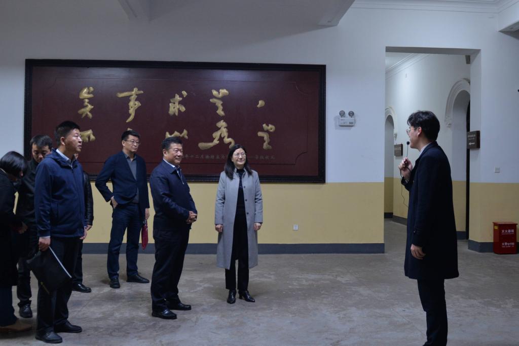蒋蓉代表一师对杨宝文一行的到来表示热烈欢迎。并陪同杨宝文一行参观了公司旧址大礼堂、第八班教室、城南古井等纪念点和“一代伟人从这里起步”主题陈列展厅,了解毛泽东同志青年时期在公司求学、工作和从事早期革命活动的八年经历与光辉事迹,了解公司的发展历程、人才培养、红色旅游和红色文化传承保护等情况。
