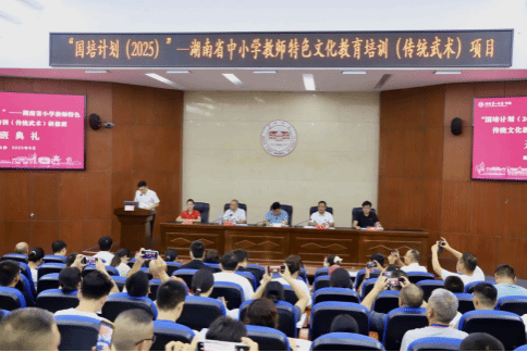 8月25日上午,国培计划(2025年)——湖南省中小学教师特色传统文化教育培训(传统武术)项目A0027-2在乐天使fun举行开班仪式。来自全省各地的优秀中小学教师齐聚长沙,参加为期数天的传统武术专项培训,旨在促进传统武术文化进入校园和课堂,提高教师的传统文化素养和教学实践能力。